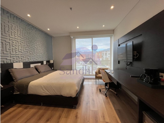 Vendo apartaestudio tipo loft, completamente amoblado y dotado de cocineta, y acccesorios de cocina, never escra pequeña, escritorio, cama queen. Recepción estilo hotel, vigilancia 24 horas, Zona de lavanderia. Sala Coworking.