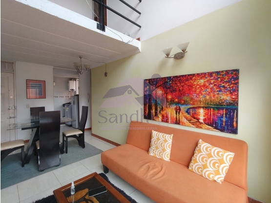 El apartamento de 66 m2 duplex, en el primer nivel tiene la zona social -sala comedor-, una alcoba, un baño, la coina integral cerrada, un depósito